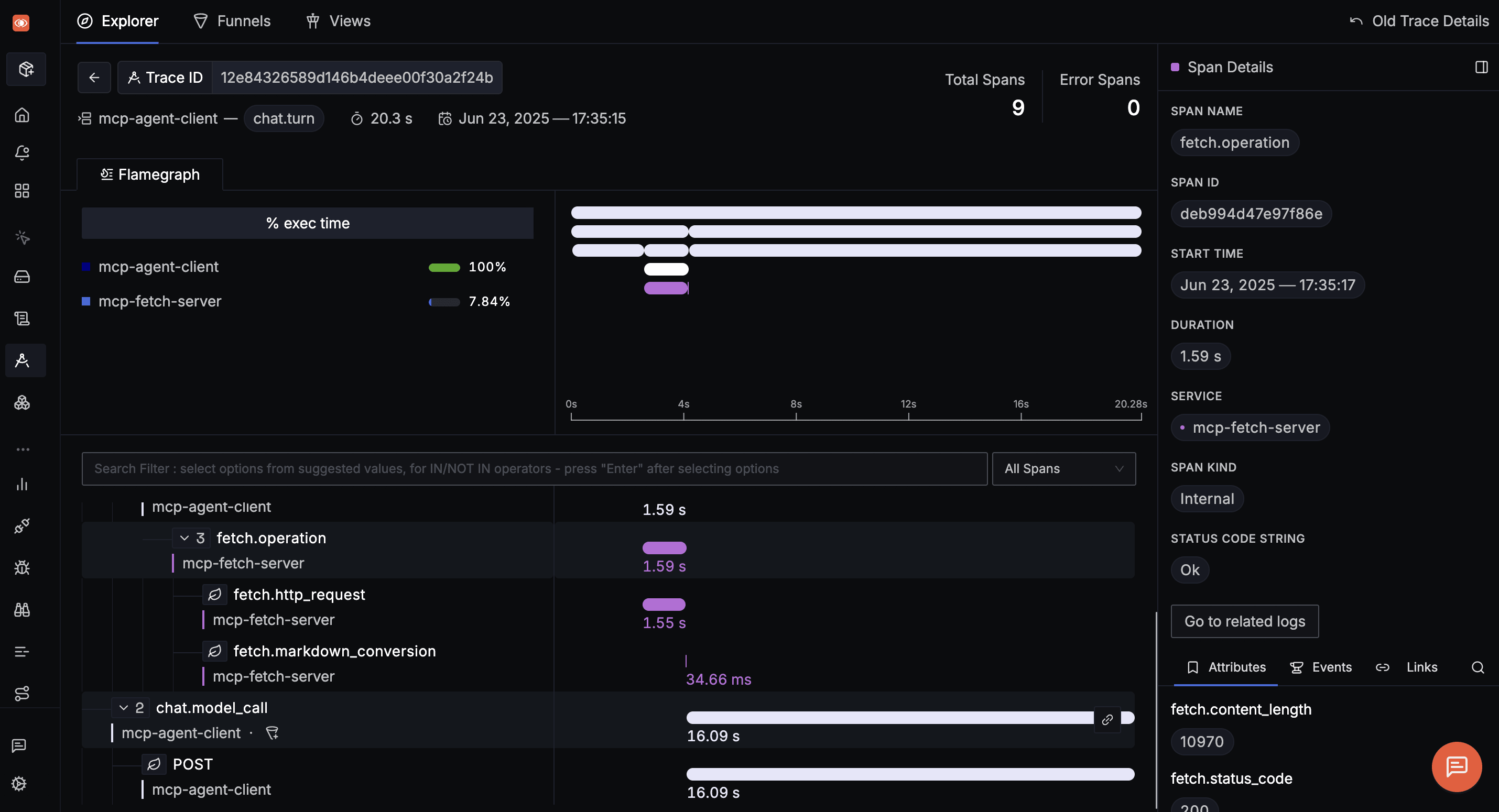 └──> Span: FetchTool invocation (MCP server)