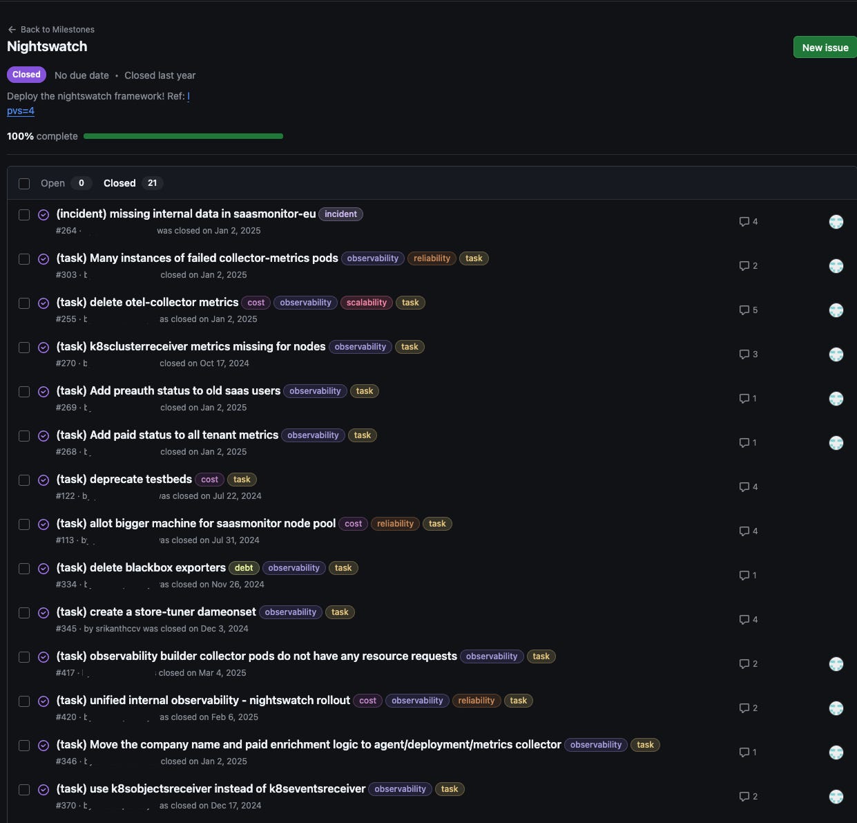 Nightswatch was our platform-pod’s first-ever milestone spanning over 1 year and 3 months, 21 issues to build something we’re insanely proud of. And the Wall still stands. If building observability at this scale sounds like your kind of challenge, we’re hiring. Come join the Watch! 😉