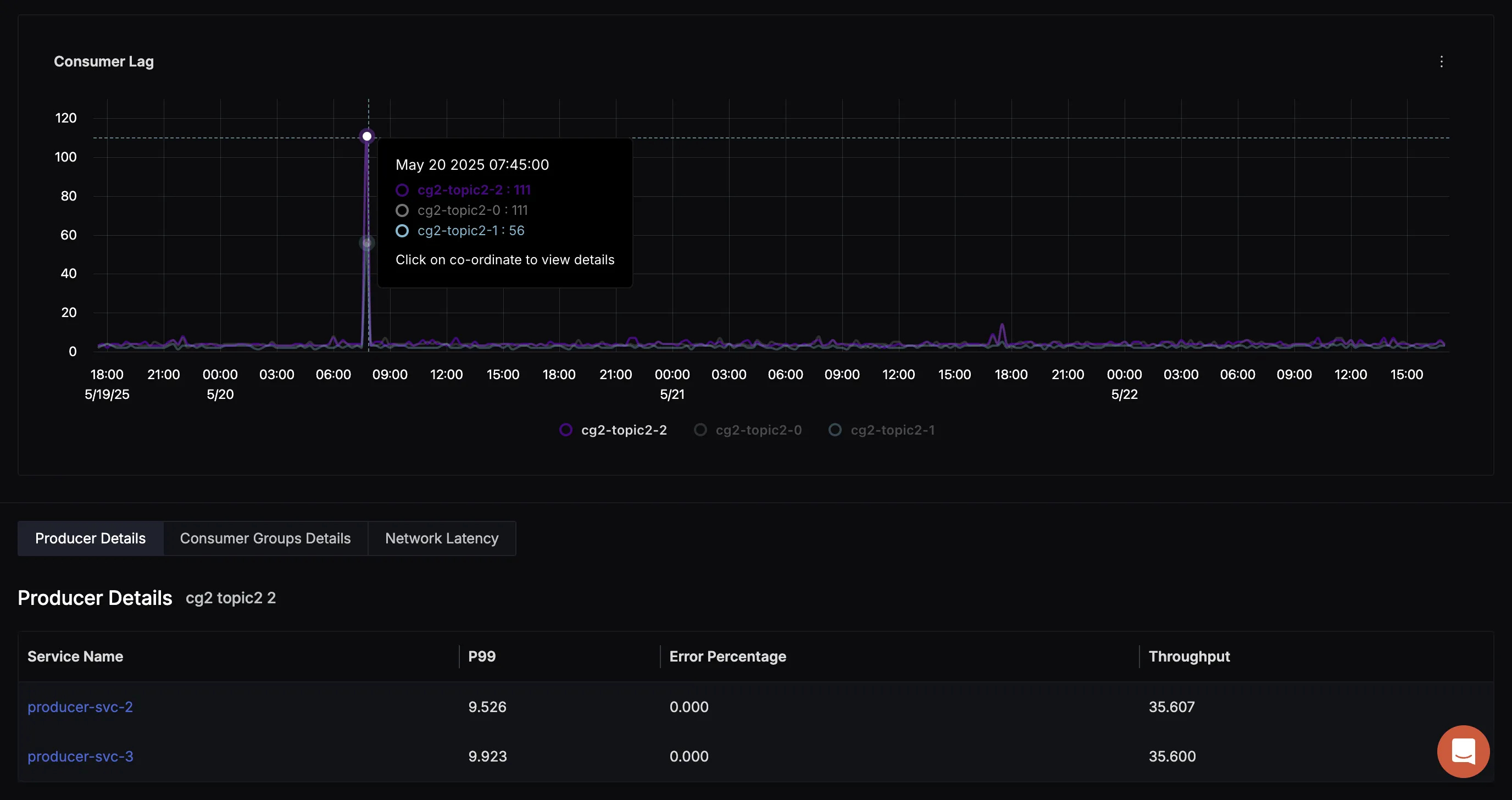 Although in this case, the consumers auto-recovered and cleared the backlog without any human intervention, it is important to reflect and drill down into the lag to rule out any potential issues.